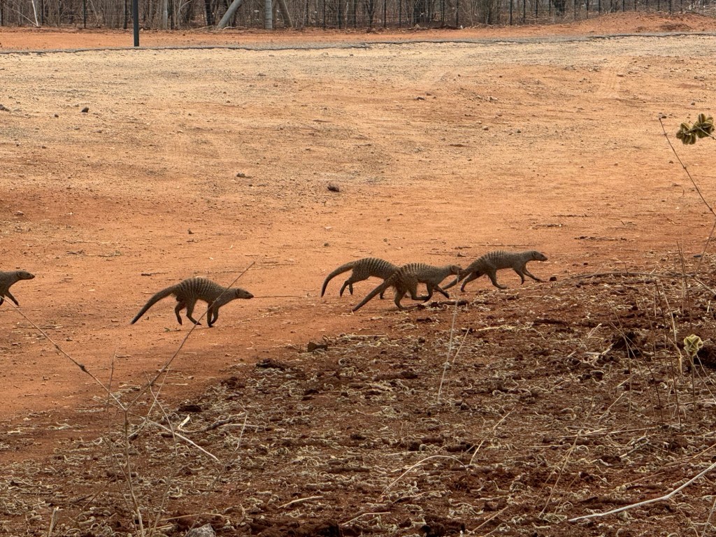 Before I start writing about the cruise, we went for a walk to the supermarket with Jayenne while we were waiting between safaris. As we walked back I spotted a large group of Mongoose heading towards us. We stopped and gave them some room as they ran into the yard of the resort behind ours.
