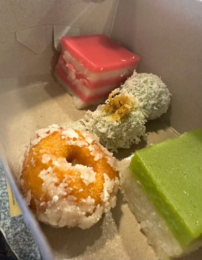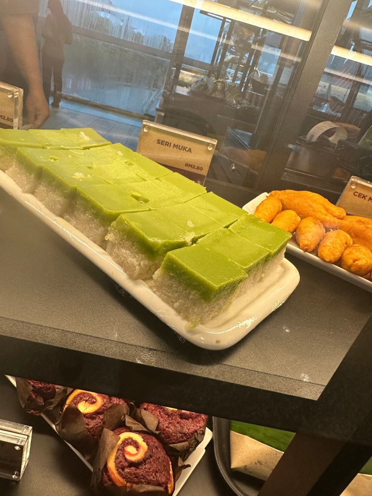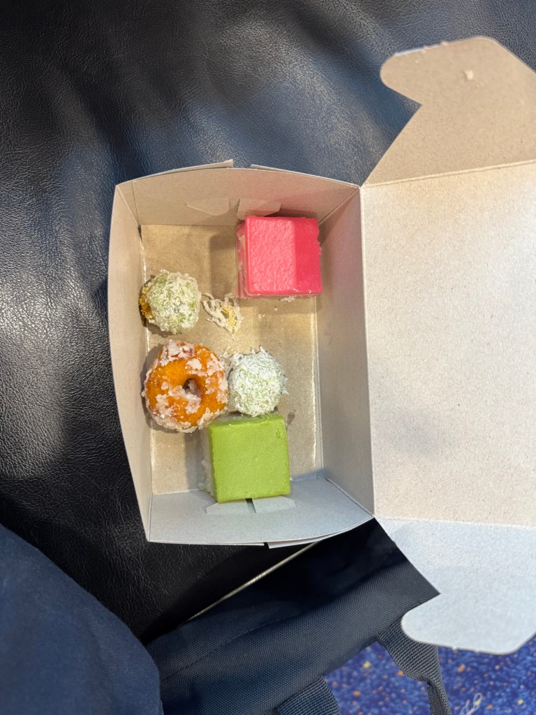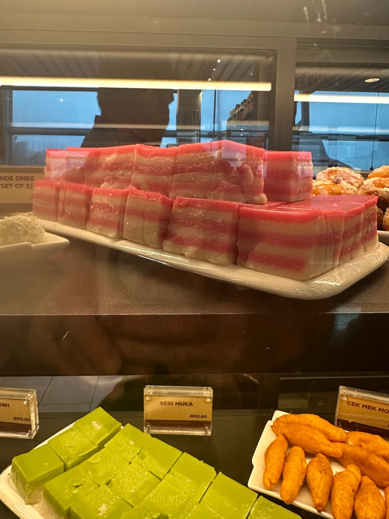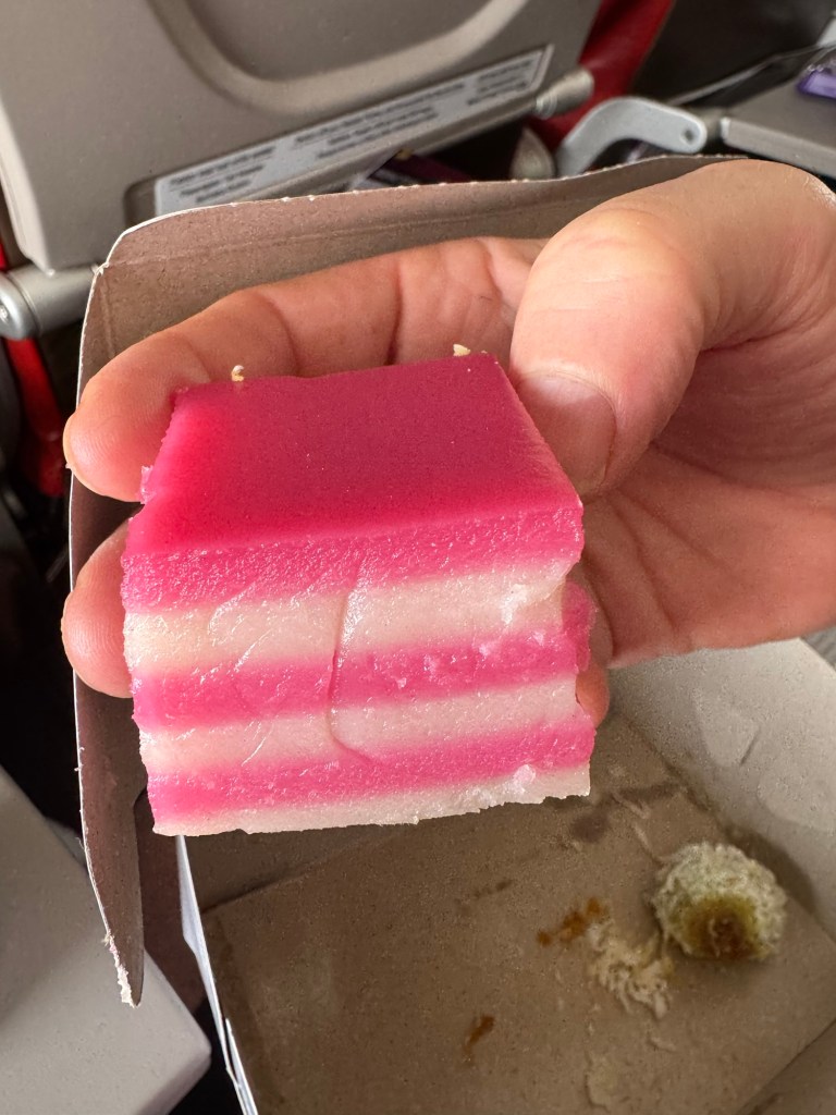 We caught the complimentary shuttle to the airport and were checked in by about 7:30. While we were wandering the airport we bought some Malaysian sweets for the trip over – for Craig’s benefit these were sweet potato donuts.