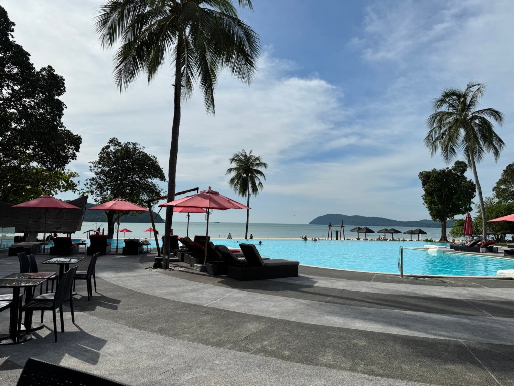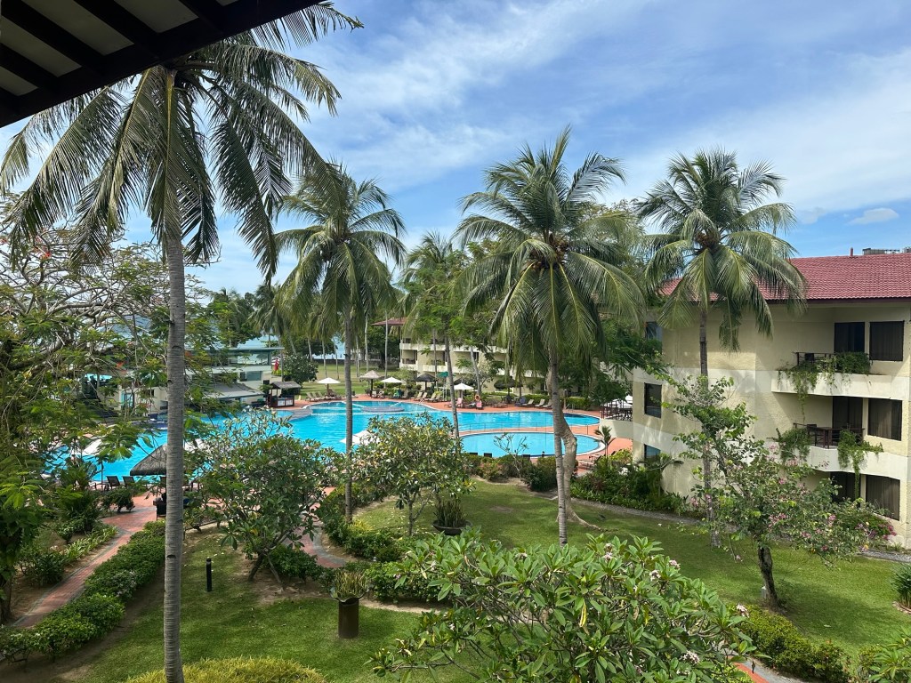 We arrived at our home for the next 6 nights (The Holliday Villa Beach Resort and Spa) by 10:30 and check in isn’t until 2. The motel is at the southern end of Tengah beach, so we decided to walk around and explore a little bit. It was very quiet, no cars and no tourists and nothing was open. We managed to find somewhere that served Malaysia food before we checked into our room. We have a view of the pool and can see the ocean.