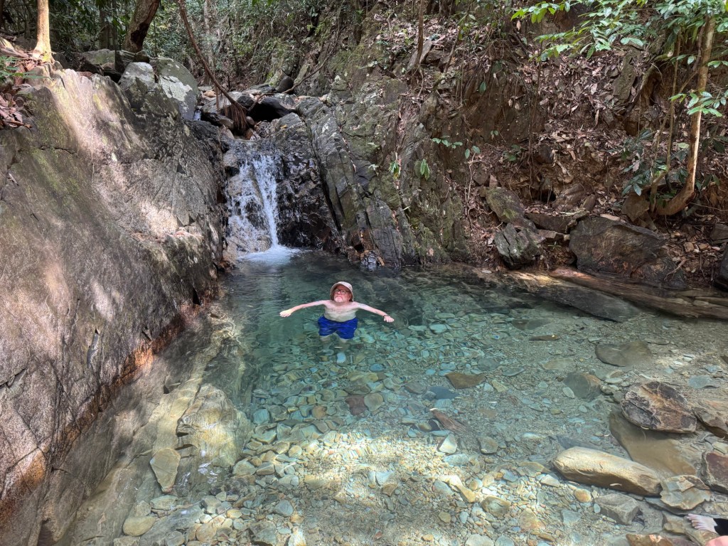 From here we hiked about an hour up to the blue pool on the way up we saw a frog and wild fighting fish.