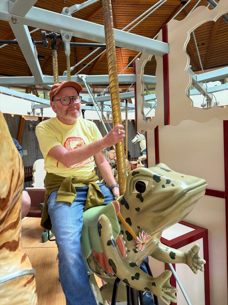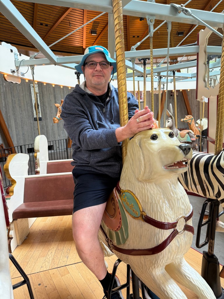 From the sunken gardens you walk up to the top of a hill where there is a beautiful carousel that you can ride for just $2 per person. I thought I probably would have to sit in a carriage rather than on a mount but there was no weight limit. It made us all feel like we were kids again riding the carousel. We thought it would go around sedately but it spins at a fair pace which added to the fun.