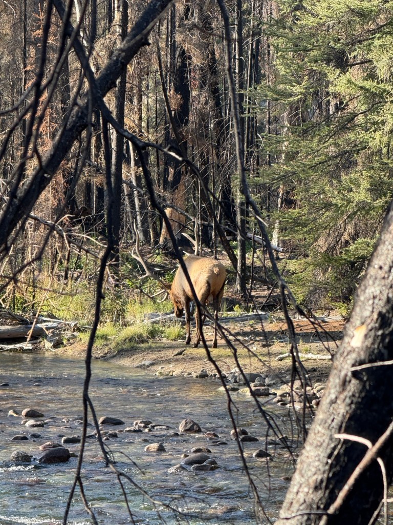 We went for an early morning walk along the river, Stu had the binoculars he is desperately trying to see a bear or Moose. The forest around here has been totally destroyed by the 2024 wildfires, as was a large amount of Becker’s. Becker’s was closed for the 2024 season to recover from the fires.