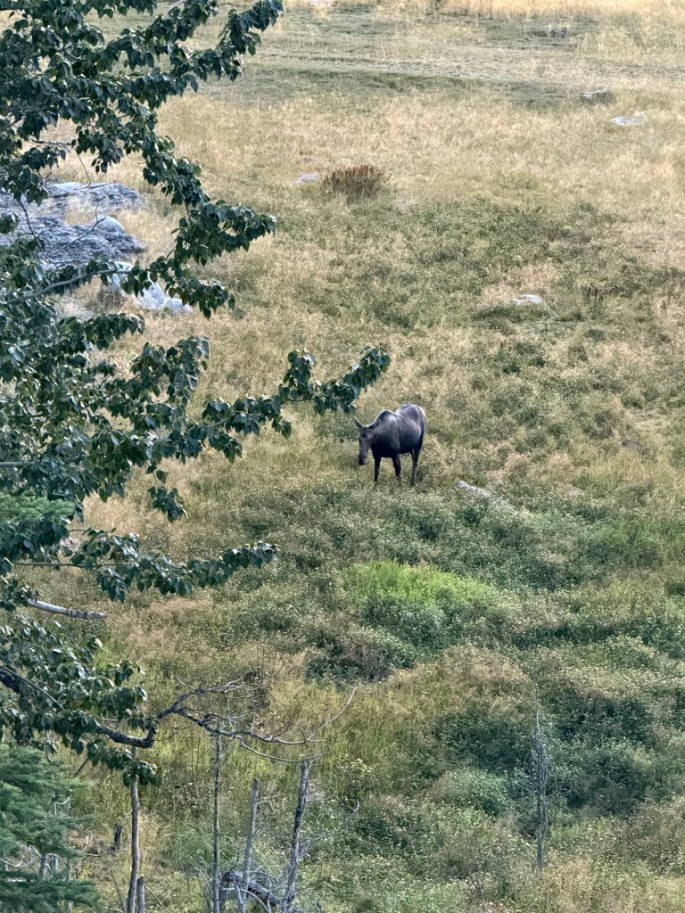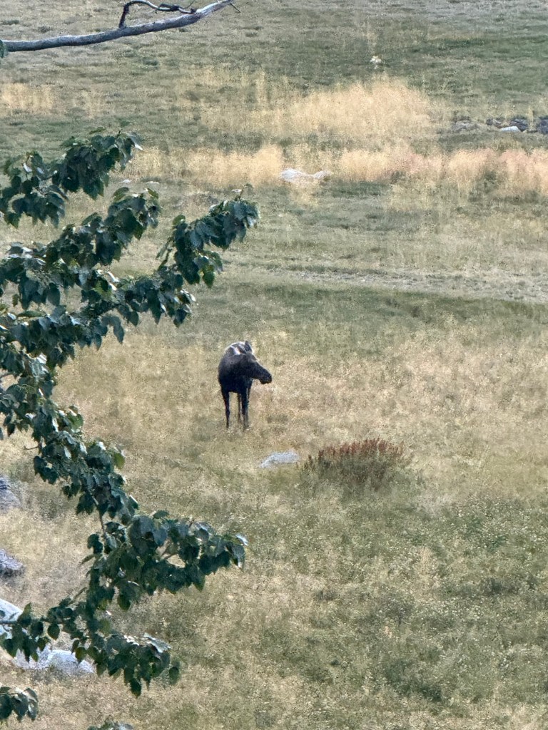 As the light was failing, we sped up the valley and I called out to Sam that I spotted something off to our right. When we pulled up it was a female Moose. I’d spotted a Moose! So we hit the trifecta – elk harem, bear and Moose.